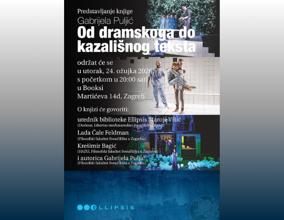 Dođite na predstavljanje knjige Od dramskog do kazališnog teksta (Durieux,2025.) autorice Gabrijele Puljić. O knjizi će uz autoricu govoriti urednik biblioteke Ellipsis Maroje Višić (Durieux, Libertas međunarodno sveučilište Zagreb), Lada Čale Feldman (Filozofski fakultet Sveučilišta u Zagrebu) i Krešimir Bagić (HAZU, Filozofski fakultet Sveučilišta u Zagrebu).