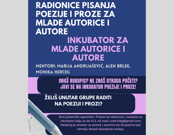 Hrvatsko društvo pisaca objavilo je natječaj za mlade autorice i autore. Program je namijenjen mladim autoricama i autorima do 35 godina starosti koji nemaju objavljenu knjigu proze ili poezije, a rok prijave je 14. veljače 2026.